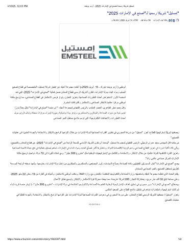 "2025 تارﺎﻣﻹا ﻲﻓ ﻊﻧﺻا"ـﻟ ﺎﯾﻣﺳر ﺎﻛﯾرﺷ "لﯾﺗﺳﻣإ"