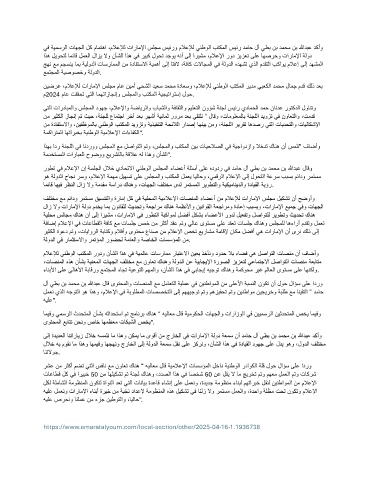 يف ةيمسرلا تاهجلا لك مامتها ،مﻼعﻺل تارامﻹا سلجم سيئرو مﻼعﻺل ينطولا بتكملا سيئر دماح لآ يطب نب دمحم نب ﷲدبع دكأو