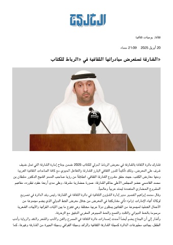 ﻒﻴﺿ ﻞﺤﺗ ﺘﻟا ﺔﻗرﺎﺸﻟا ةرﺎﻣإ حﺎﻨﺟ ﻦﻤﺿ 2025 بﺎﺘﻠﻟ ﻟوﺪﻟا طﺎﺑﺮﻟا ضﺮﻌﻣ ﻓ ﺔﻗرﺎﺸﻟﺎﺑ ﺔﻓﺎﻘﺜﻟا ةﺮﺋاد كرﺎﺸﺗ