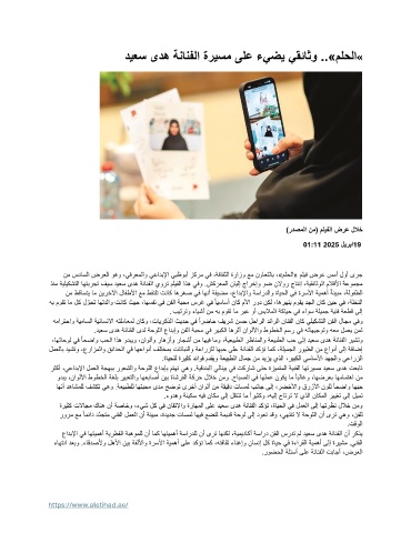 ديعس ىده ةنانفلا ةريسم ىلع ءيضي يقئاثو ..»ملحلا «