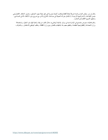 يجولونكتلا راكتبلاا زيزعتو ،نيطوتلا دوهج ةلجع عفد يف ةيروحم ةيمهأ بستكي عاطقلل ًانكمُم ًاكيرش هنوك نزاوتلا سلجم رود نإ لاقو