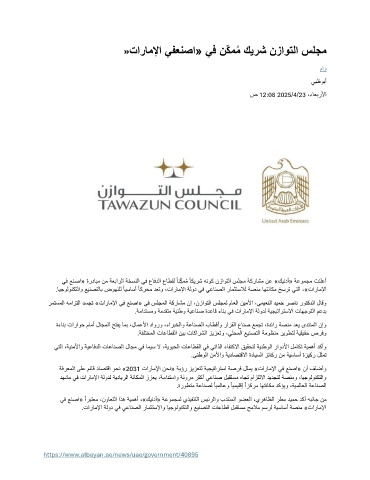 دهشم يف تاراملإا ةلودل ةيدايرلا ةناكملا ززعي ،ةمادتساو ةنورم رثكأ يعانص لبقتسم هاجت مازتللاا ديدجتل ةصنمو ،ايجولونكتلاو