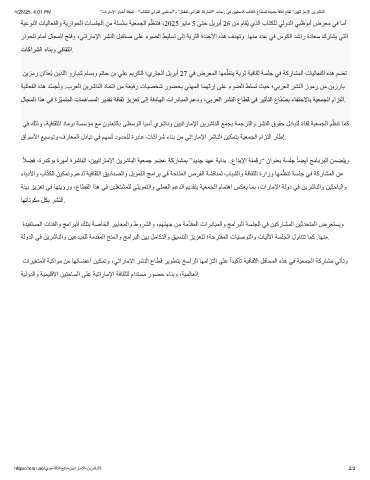 تاﺮﯿﻐﺘﻤﻟا ﺔﺒﻛاﻮﻣ ﻦﻣ ﺎﮭﺋﺎﻀﻋأ ﻦﯿﻜﻤﺗو ،ﻲﺗارﺎﻣﻹا ﺮﺸﻨﻟا عﺎﻄﻗ ﺮﯾﻮﻄﺘﺑ ﺦﺳاﺮﻟا ﺎﮭﻣاﺰﺘﻟا ﻰﻠﻋ ًاﺪﯿﻛﺄﺗ ﺔﯿﻓﺎﻘﺜﻟا ﻞﻓﺎﺤﻤﻟا هﺬھ ﻲﻓ ﺔﯿﻌﻤﺠﻟا ﺔﻛرﺎﺸﻣ ﻲﺗﺄﺗو