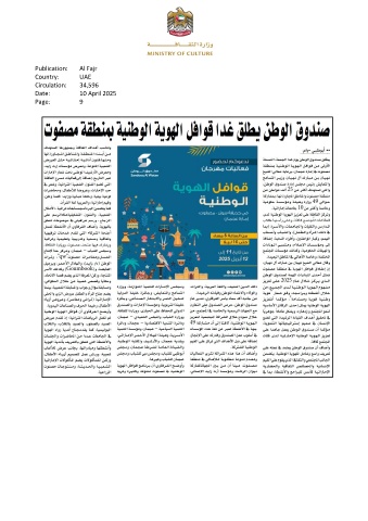 Publication: Al Fajr Country: UAE Circulation: 34,596 Date: 10 April 2025 Page: 9