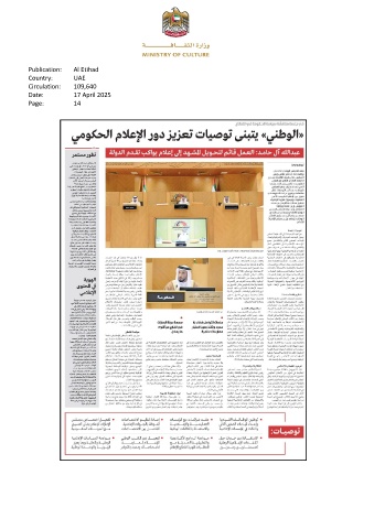 Publication: Al Etihad Country: UAE Circulation: 109,640 Date: 17 April 2025 Page: 14