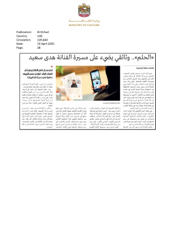 Publication: Al Etihad Country: UAE Circulation: 109,640 Date: 19 April 2025 Page: 28