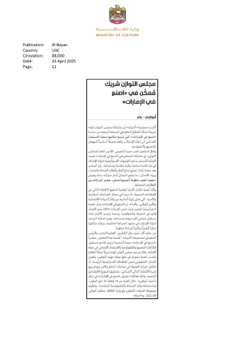 Publication: Al Bayan Country: UAE Circulation: 88,000 Date: 23 April 2025 Page: 11
