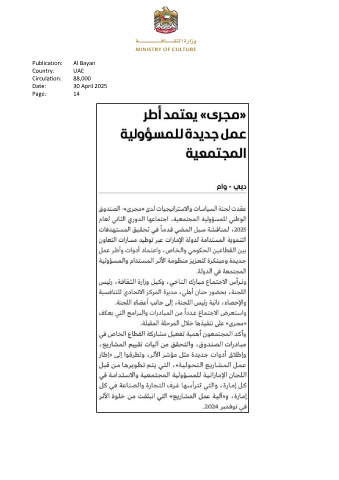 Publication: Al Bayan Country: UAE Circulation: 88,000 Date: 30 April 2025 Page: 14