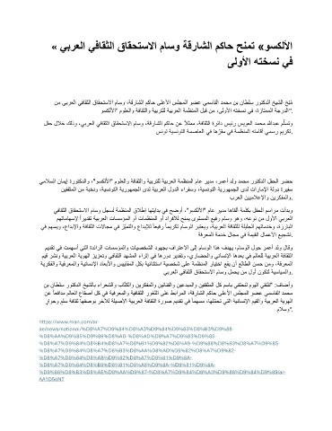 نم يبرعلا يفاقثلا قاقحتسﻻا ماسو ،ةقراشلا مكاح ىلعﻷا سلجملا وضع يمساقلا دمحم نب ناطلس روتكدلا خيشلا َحِنُم