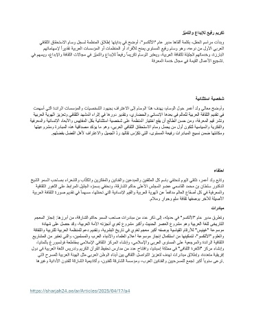 ةيبرعلا ةيوهلا زيزعتو يفاقثلا دهشملا ءارثإ يف اهرود ريدقتو ،يراضحلاو يناسنﻹا اهدعب يف ملاعلل ةيبرعلا ةفاقثلا ميدقت يف