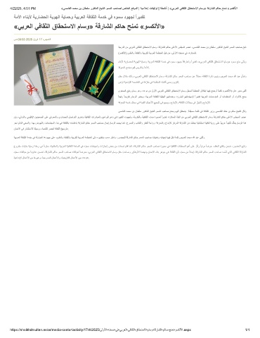 4/22/25, 4:51 PM «ﻲﻣﺳﺎﻘﻟا دﻣﺣﻣ نﺑ نﺎطﻠﺳ روﺗﻛدﻟا ﺦﯾﺷﻟا وﻣﺳﻟا بﺣﺎﺻﻟ صﺎﺧﻟا ﻊﻗوﻣﻟا | ﺔﯾﻣﻼﻋإ تﺎﻘﯾﺛوﺗ | ﺔطﺷﻧأ | «ﻲﺑرﻌﻟا ﻲﻓﺎﻘﺛﻟا قﺎﻘﺣﺗﺳﻻا مﺎﺳو» ﺔﻗرﺎﺷﻟا مﻛﺎﺣ ﺢﻧﻣﺗ «وﺳﻛﻟﻷا