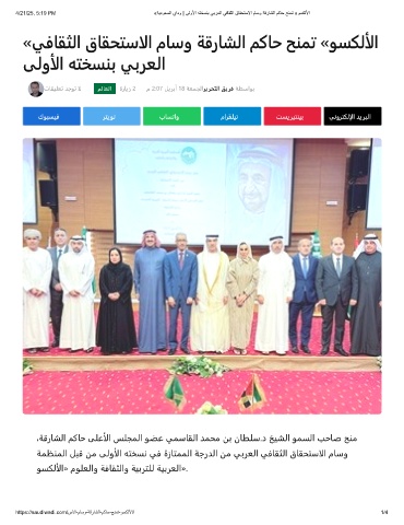 4/21/25, 5:19 PM «ﺔﯾدوﻌﺳﻟا يادو | ﻰﻟوﻷا ﮫﺗﺧﺳﻧﺑ ﻲﺑرﻌﻟا ﻲﻓﺎﻘﺛﻟا قﺎﻘﺣﺗﺳﻻا مﺎﺳو ﺔﻗرﺎﺷﻟا مﻛﺎﺣ ﺢﻧﻣﺗ «وﺳﻛﻟﻷا