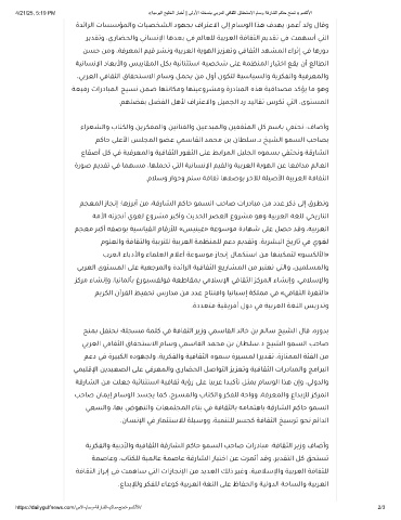 4/21/25, 5:19 PM «ﺔﯾﻣوﯾﻟا ﺞﯾﻠﺧﻟا رﺎﺑﺧأ | ﻰﻟوﻷا ﮫﺗﺧﺳﻧﺑ ﻲﺑرﻌﻟا ﻲﻓﺎﻘﺛﻟا قﺎﻘﺣﺗﺳﻻا مﺎﺳو ﺔﻗرﺎﺷﻟا مﻛﺎﺣ ﺢﻧﻣﺗ «وﺳﻛﻟﻷا