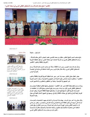 4/21/25, 5:19 PM “يرﺎﺑﺧﻹا زﻣﯾﺎﺗ مﺎﺷ – ﻰﻟوﻷا ﮫﺗﺧﺳﻧ ﻲﻓ ﻲﺑرﻌﻟا ﻲﻓﺎﻘﺛﻟا قﺎﻘﺣﺗﺳﻻا مﺎﺳو ﺔﻗرﺎﺷﻟا مﻛﺎﺣ ﺢﻧﻣﺗ ”وﺳﻛﻟﻷا