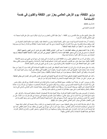 ةمدخ يف نونفلاو ةفاقثلا رود ززعي يملاعلا ضرلأا موي :ةفاقثلا ريزو