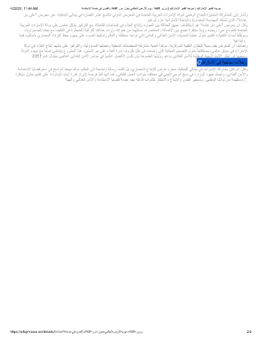 ﺔﺋﯾﺑﻟاو ﻲﺋاذﻐﻟا نﻣﻷاو ﺔﻣادﺗﺳﻻا ﺎﯾﺎﺿﻗ ﺔﻣدﺧ وﺣﻧ ﺔﻠﻋﺎﻓ تاودﺄﻛ رﺎﻛﺗﺑﻻاو عادﺑﻹاو نوﻧﻔﻟا رﯾﺧﺳﺗو ،ﻲﻧطوﻟا ﺎﻧﺛارﺗ نﻣ ﺔﻣﮭﻠﺗﺳﻣو”.