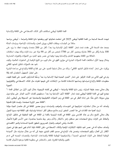 ﺔيﻧﺎسﻧﻹاو ﺔﻓﺎﻘثﻟا ﻰﻠﻋ ﻲﻋﺎنطﺻﻻا ءﺎكذﻟا ريﺛﺄﺗ ﻒشكتسﺗ ﻲبظوﺑأ ﺔيفﺎﻘثﻟا ﺔمﻘﻟا