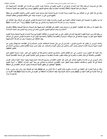 2031 تارﺎﻣﻹا نﺣﻧ " ﺔﯾؤرو 2023 تﯾوﻛﻟا ﺔﯾؤر ﻊﻣ ﻰﺷﺎﻣﺗﯾ ﺎﻣﺑو ﺔﯾﺟﯾﺗارﺗﺳﻻا ﺔﻛارﺷﻟا نﻣ بﺣرأ تﺎﯾوﺗﺳﻣ.