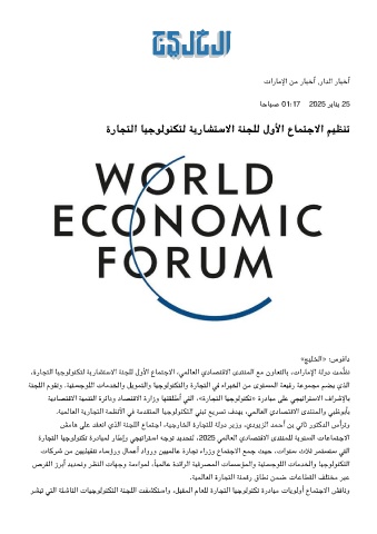 ،ةرﺎﺠﺘﻟا ﺎﻴﺟﻮﻟﻮﻨﺘﻟ ﺔﻳرﺎﺸﺘﺳﻻا ﺔﻨﺠﻠﻟ لوﻷا عﺎﻤﺘﺟﻻا ،ﻤﻟﺎﻌﻟا يدﺎﺼﺘﻗﻻا ىﺪﺘﻨﻤﻟا ﻊﻣ نوﺎﻌﺘﻟﺎﺑ ،تارﺎﻣﻹا ﺔﻟود ﺖﻤﱠﻈﻧ