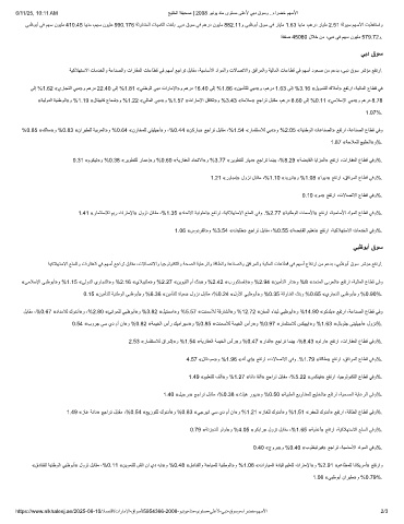 %0.85 «كﻟﺎﺳ»و %0.83 «نارﯾطﻠﻟ ﺔﯾﺑرﻌﻟا»و %0.64 «نزﺎﺧﻣﻠﻟ ﻲﺗﯾﻠﯾﺟأ»و ،%0.44 «نﻛرﺎﺑ» ﻊﺟارﺗ لﺑﺎﻘﻣ ،%1.54 «رﺎﻣﺛﺗﺳﻼﻟ ﻲﺑد»و %2.05 «ﺔﯾﻧطوﻟا تﺎﻋﺎﻧﺻﻟا» ﻊﻔﺗرا ،ﺔﻋﺎﻧﺻﻟا عﺎطﻗ ﻲﻓو