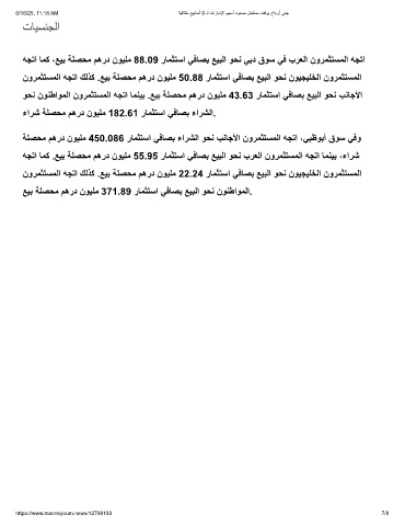 ﺔﻠﺻﺣﻣ مھرد نوﯾﻠﻣ 450.086 رﺎﻣﺛﺗﺳا ﻲﻓﺎﺻﺑ ءارﺷﻟا وﺣﻧ بﻧﺎﺟﻷا نورﻣﺛﺗﺳﻣﻟا ﮫﺟﺗا ،ﻲﺑظوﺑأ قوﺳ ﻲﻓو