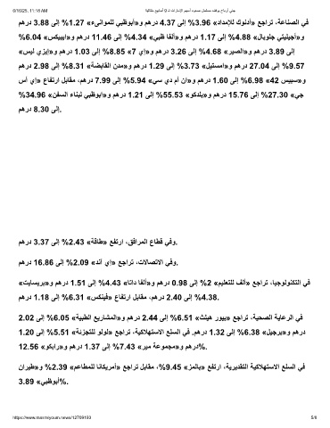 مھرد 3.88 ﻰﻟإ %1.27 «ءﻰﻧاوﻣﻠﻟ ﻲﺑظوﺑأ»و مھرد 4.37 ﻰﻟإ %3.96 «دادﻣﻺﻟ كوﻧدأ» ﻊﺟارﺗ ،ﺔﻋﺎﻧﺻﻟا ﻲﻓ