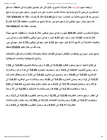 5 لﻼﺧ %1.75 ًﺎﺿﻔﺧﻧﻣ ،بﺳﺎﻛﻣﻟا نﻣ ﻊﯾﺑﺎﺳأ 8 دﻌﺑ ،ﻲﻋوﺑﺳأ ﻊﺟارﺗ لوأ ﻲﺑظوﺑأ قوﺳ رﺷؤﻣ لﺟﺳ ﺎﻣﻛ