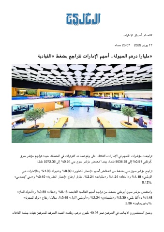 ﺑد تارﺎﻣﻹا»و %1.08 «اﻮﻳد»و %0.80 «ﺮﻳﻮﻄﺘﻠﻟ رﺎﻤﻋإ» ﻢﻬﺳأ ضﺎﻔﺨﻧا ﻦﻣ ﻂﻐﻀﺑ ﺑد قﻮﺳ ﺮﺷﺆﻣ ﻊﺟاﺮﺗ