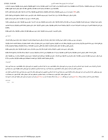 2.07 «ﺔﯾﺑطﻟا ﻊﯾرﺎﺷﻣﻠﻟ ﺞﯾﻠﺧﻟا»و %0.41 «ثﻠﯾھ روﯾﺑ» عﺎﻔﺗرا لﺑﺎﻘﻣ ،%3.01 «لﯾﺟرﺑ» ﻊﺟارﺗ ،ﺔﯾﺣﺻﻟا ﺔﯾﺎﻋرﻟا ﻲﻓو .%1.19 «ﺔﻗﺎط» ﻊﺟارﺗ ،ﻖﻓارﻣﻟا ﻲﻓو%.