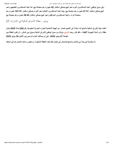 موﯾ ﺔﻠطﻌﻟا نوﻛﺗ نأ - ﻲﻟﺎﻣﻟا ﻲﺑد قوﺳو ﺔﯾﻟﺎﻣﻟا قاروﻸﻟ ﻲﺑظوﺑأ قوﺳ نﻣ لﻛ ﻊﻣ ﻖﯾﺳﻧﺗﻟا دﻌﺑو ررﻘﺗ دﻘﻓ ،ه 1447 ﺔﯾرﺟﮭﻟا ﺔﻧﺳﻟا سأر ﺔﻠطﻋ