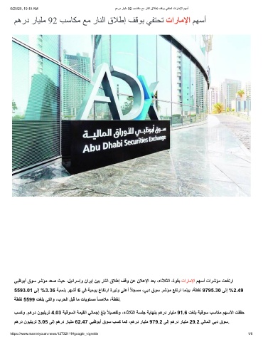 ﻲﺑظوﺑأ قوﺳ رﺷؤﻣ دﻌﺻ ثﯾﺣ ،لﯾﺋارﺳإو نارﯾإ نﯾﺑ رﺎﻧﻟا قﻼطإ فﻗو نﻋ نﻼﻋﻹا دﻌﺑ ،ءﺎﺛﻼﺛﻟا ،ةوﻘﺑ تارﺎﻣﻹا مﮭﺳأ تارﺷؤﻣ تﻌﻔﺗرا
