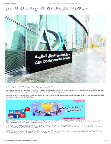 «يرﺎﺠﺘﻟا ﻲﺒظﻮﺑأ»و ﻢھرد 3.37 ﻰﻟإ %1.20 «زﺎﻐﻠﻟ كﻮﻧدأ»و ﻢھرد 20.42 ﻰﻟإ %5.91 ﻲﻣﻼﺳﻹا ﻲﺒظﻮﺑأو ﻢھرد 8.90 ﻰﻟإ %10.01 ﺔﯾرﺎﻘﻌﻟا راﺪﻟا ﻢﮭﺳأ دﻮﻌﺻ ﻦﻣ ﻢﻋﺪﺑ ﻲﺒظﻮﺑأ قﻮﺳ ﺮﺷﺆﻣ ﻊﻔﺗراو