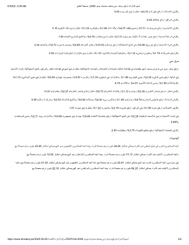 1.50 «ﺔﯾﺑطﻟا ﻊﯾرﺎﺷﻣﻠﻟ ﺞﯾﻠﺧﻟا»و %0.76 «رﺎﻔﻠﺟ» ﻊﺟارﺗ لﺑﺎﻘﻣ ،%2.31 «لﯾﺟرﺑ»و %3.17 «ثﻠﯾھ روﯾﺑ» ﻊﻔﺗرا ،ﺔﯾﺣﺻﻟا ﺔﯾﺎﻋرﻟا ﻲﻓو%.