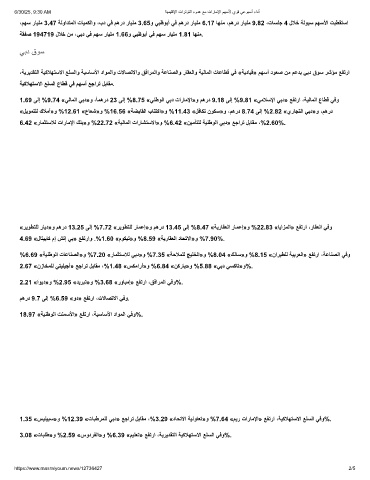 %6.69 «ﺔﯾﻧطوﻟا تﺎﻋﺎﻧﺻﻟا»و %7.20 «رﺎﻣﺛﺗﺳﻼﻟ ﻲﺑد»و %7.35 «ﺔﺣﻼﻣﻠﻟ ﺞﯾﻠﺧﻟا»و %8.04 «كﻟﺎﺳ»و %8.15 «نارﯾطﻠﻟ ﺔﯾﺑرﻌﻟا» ﻊﻔﺗرا ،ﺔﻋﺎﻧﺻﻟا ﻲﻓو