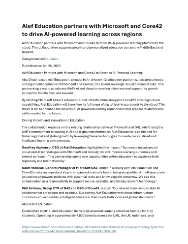 cloud and AI technologies with Microsoft and Core42, we will improve learning outcomes and