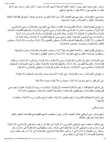 25.5 ﺎﮭﻨﻣ ،ﻢھرد رﺎﯿﻠﻣ 123.7 ﻮﺤﻨﺑ تارﺎﻣﻹا ﻢﮭﺳﻷ ﺔﯿﻗﻮﺴﻟا ﺔﻤﯿﻘﻟا ﺖﻌﻔﺗرا ،ﻮﯿﻧﻮﯾ ﺮﮭﺷ ﺪﯿﻌﺻ ﻰﻠﻋو .ﻢھرد
