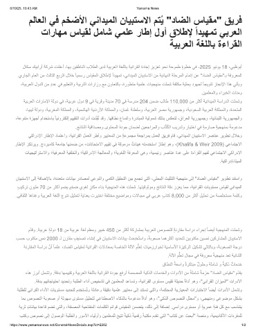 لﺎﻛﺳ كﯾﺑارأ ﺔﻛرﺷ تﻧﻠﻋأ ،ﺎﮭﺑ نﯾﻘطﺎﻧﻟا بﻼطﻟا ىدﻟ ﺔﯾﺑرﻌﻟا ﺔﻐﻠﻟﺎﺑ ﺔﯾﺋارﻘﻟا ةدﺎﺟإ زﯾزﻌﺗ وﺣﻧ ﺔﺣوﻣط ٍةوطﺧ ﻲﻓ -2025 وﯾﻧوﯾ 18 ،ﻲﺑظوﺑأ