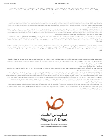 نﺎﯾﺑﺗﺳﻻا نﻣ ﺔﯾﺋﺎﮭﻧﻟا ﺔﻠﺣرﻣﻟا مﺎﻣﺗإ نﻋ "دﺎﺿﻟا سﺎﯾﻘﻣ"ـﺑ ﺔﻓورﻌﻣﻟا لﺎﻛﺳ كﯾﺑارأ ﺔﻛرﺷ تﻧﻠﻋأ ،ﺎﮭﺑ نﯾﻘطﺎﻧﻟا بﻼطﻟا ىدﻟ ﺔﯾﺑرﻌﻟا ﺔﻐﻠﻟﺎﺑ ﺔﯾﺋارﻘﻟا ةدﺎﺟإ زﯾزﻌﺗ وﺣﻧ ﺔﺣوﻣط ٍةوطﺧ ﻲﻓ -2025 وﯾﻧوﯾ 18 ،ﻲﺑظوﺑأ