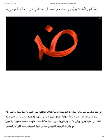 6/19/25, 10:42 AM «ﻲﺑرﻌﻟا مﻟﺎﻌﻟا ﻲﻓ ﻲﻧادﯾﻣ نﺎﯾﺑﺗﺳا مﺧﺿأ ﻲﮭﻧُﯾ «دﺎﺿﻟا سﺎﯾﻘﻣ