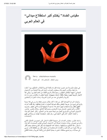 6/19/25, 10:42 AM "ﻲﺑرﻌﻟا مﻟﺎﻌﻟا ﻲﻓ ﻲﻧادﯾﻣ عﻼطﺗﺳا رﺑﻛأ مﺗﺗﺧُﯾ "دﺎﺿﻟا سﺎﯾﻘﻣ