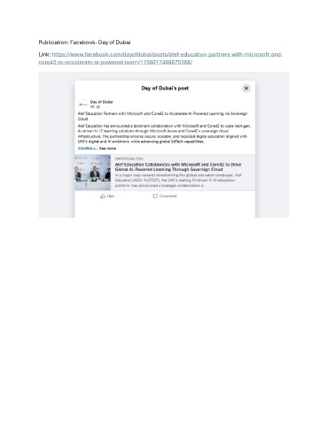 Publication: Facebook- Day of Dubai Link: https://www.facebook.com/dayofdubai/posts/alef-education-partners-with-microsoft-and- core42-to-accelerate-ai-powered-learn/1156017469875168/