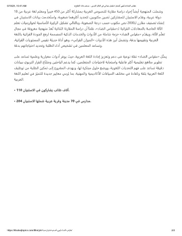 ﻰﻠﻋ ﺪﻋﺎﺴﺗ ﺔﻴﻤﻠﻋو ﺔﻳرﺎﻴﻌﻣ تاودأ ﺮﻓﻮﻳ ﺚﻴﺣ ،ﺔﻴﺑﺮﻌﻟا ﺔﻐﻠﻟا ةدﺎﺟإ ﺰﻳﺰﻌﺗو ﻢﻋد ﻲﻓ ﺔﻴﻋﻮﻧ ﺔﻠﻘﻧ «دﺎﻀﻟا سﺎﻴﻘﻣ» ﻞّﺜﻤﻳ