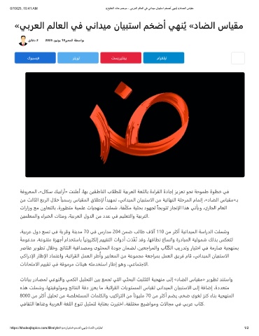 6/19/25, 10:41 AM «ﺞﯾﻠﺧﻟا تﺎﻋوﺿوﻣ - ﻲﺑرﻌﻟا مﻟﺎﻌﻟا ﻲﻓ ﻲﻧادﯾﻣ نﺎﯾﺑﺗﺳا مﺧﺿأ ﻲﮭﻧُﯾ «دﺎﺿﻟا سﺎﯾﻘﻣ