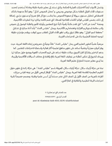 6/19/25, 10:41 AM 25 – ﺔﯾﺑرﻌﻟا ﺔﻐﻠﻟﺎﺑ ةءارﻘﻟا تارﺎﮭﻣ سﺎﯾﻘﻟ لﻣﺎﺷ ﻲﻣﻠﻋ رﺎطإ لوأ قﻼطﻹ ًادﯾﮭﻣﺗ ﻲﺑرﻌﻟا مﻟﺎﻌﻟا ﻲﻓ مﺧﺿﻷا ﻲﻧادﯾﻣﻟا نﺎﯾﺑﺗﺳﻻا مﺗُﯾ ”دﺎﺿﻟا سﺎﯾﻘﻣ“ ﻖﯾرﻓH