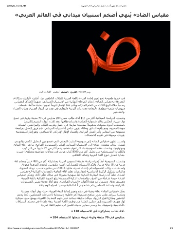 6/19/25, 10:40 AM «ﻲﺑرﻌﻟا مﻟﺎﻌﻟا ﻲﻓ ﻲﻧادﯾﻣ نﺎﯾﺑﺗﺳا مﺧﺿأ ﻲﮭﻧُﯾ «دﺎﺿﻟا سﺎﯾﻘﻣ