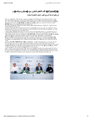 ﻲﻓ ﺔﻳرﻮﺤﻣ ً ةﻮﻄﺧ �Core42�و �ﻢﯿﻠﻌﺘﻠﻟ ﻒﻟأ� ﻊﻣ نوﺎﻌﺘﻟا ﻞﻜﺸُﻳ" :"تارﺎﻣﻹا ﺖﻓﻮﺳوﺮﻜﻳﺎﻣ" مﺎﻋ ﺮﻳﺪﻣ ،ﻚﺑﺰﻳ ﻢﯿﻌﻧ لﺎﻗ ،هروﺪﺑ