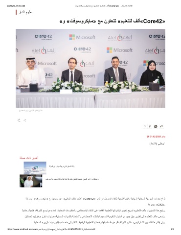 6/30/25, 9:39 AM «و «تﻓوﺳورﻛﯾﺎﻣ» ﻊﻣ نوﺎﻌﺗﺗ «مﯾﻠﻌﺗﻠﻟ فﻟأ«Core42» - رﺎﺑﺧﻸﻟ دﺎﺣﺗﻻا