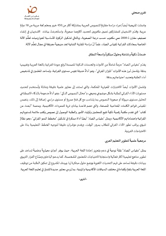اهمييقتو ةيبرعلا ةغللاب ةيئارقلا ةدوج عفرل ةممصلما ةيكذلا تامدخلاو تاودلأا نم ةلماش ةمزح "داضلا سايقم" م دقي