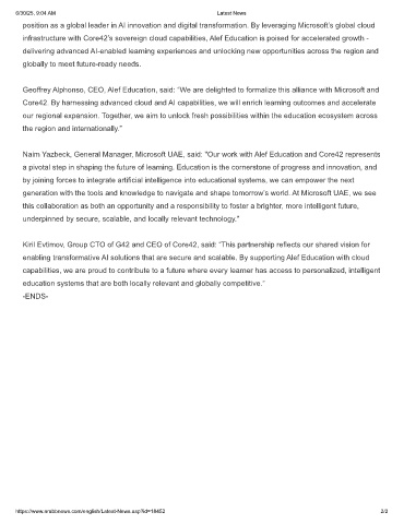Naim Yazbeck, General Manager, Microsoft UAE, said: "Our work with Alef Education and Core42 represents