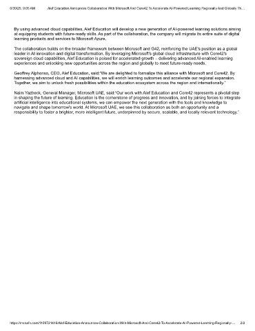 6/30/25, 9:05 AM  Alef Education Announces Collaboration With Microsoft And Core42 To Accelerate AI-Powered Learning Regionally And Globally Th…